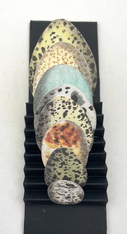 This diamon-shaped accordion book has lots of ladies' hands holding their fine feathere friends. One of a kind. Measures 2" by 2".