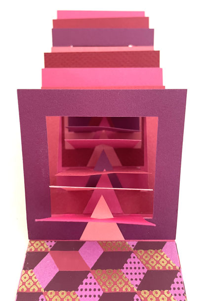 When you open this book you see a small accordion tunneling through a larger accordion---so sculptural...