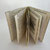 The binding of this book is unusual in that it is just two long strips of paper that weave through the pages. One of a kind. Measures 3" by 4".