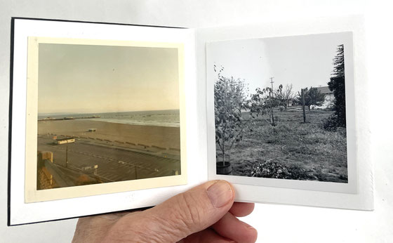 The pages of this accordion book are origami-folded frames. Underwater portraits of Koi fish are stored in this mini-album. One of a kind.